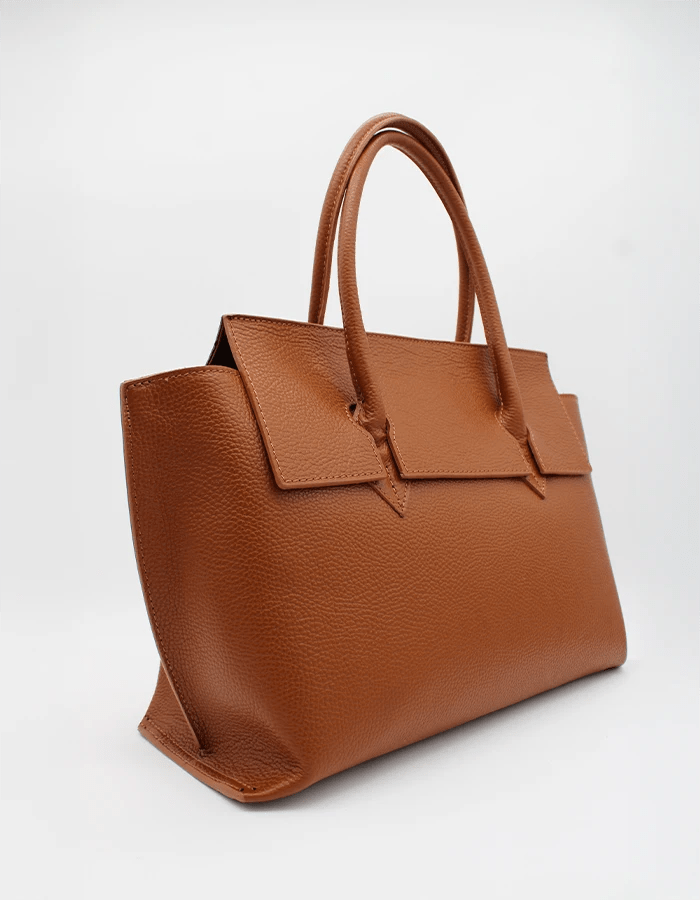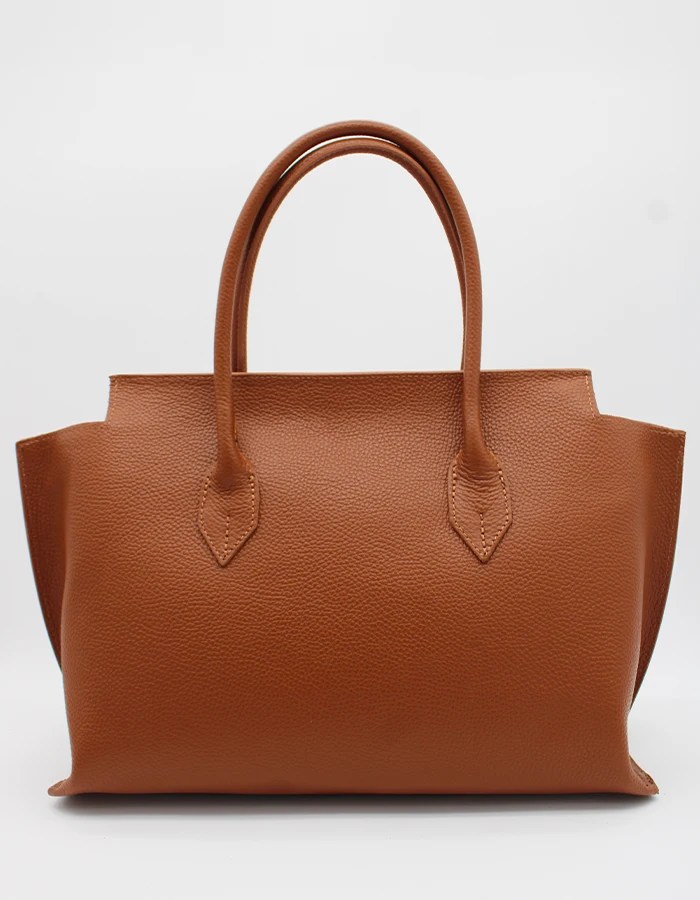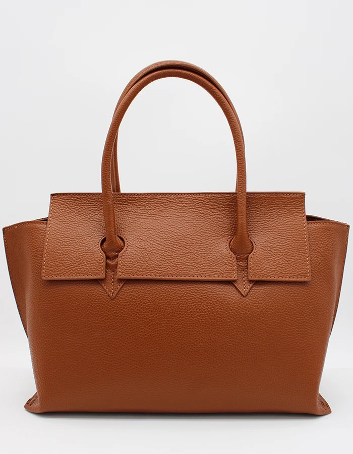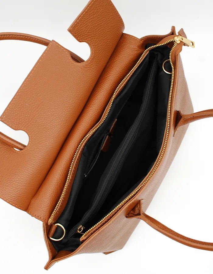 Sac à main en cuir Roma – Le volume chic et structuré pour toutes vos journées.   Élégant, spacieux et structuré, le sac à main en cuir Roma est une pièce incontournable pour celles qui recherchent une capacité généreuse sans sacrifier le style. Fabriqué en Italie en cuir véritable grainé, il allie modernité et raffinement grâce à ses finitions impeccables et son design sophistiqué. Doté d’une fermeture zippée sécurisée, surmontée d’un rabat raffiné, le Roma se distingue par son intérieur parfaitement organisé. Ses deux grands compartiments séparés par une grande poche centrale zippée permettent de ranger vos essentiels du quotidien avec élégance : tablette, cahier, agenda, trousse, lunettes ou petite bouteille d’eau trouvent naturellement leur place. Une poche intérieure zippée et deux poches ouvertes viennent compléter ce rangement astucieux. Pensé pour la femme active, le sac Roma peut être porté à la main ou à l’épaule grâce à sa bandoulière amovible (non réglable), parfaite pour les journées chargées ou les déplacements. Son format structuré et son style intemporel en font une pièce maîtresse de votre vestiaire professionnel et chic.